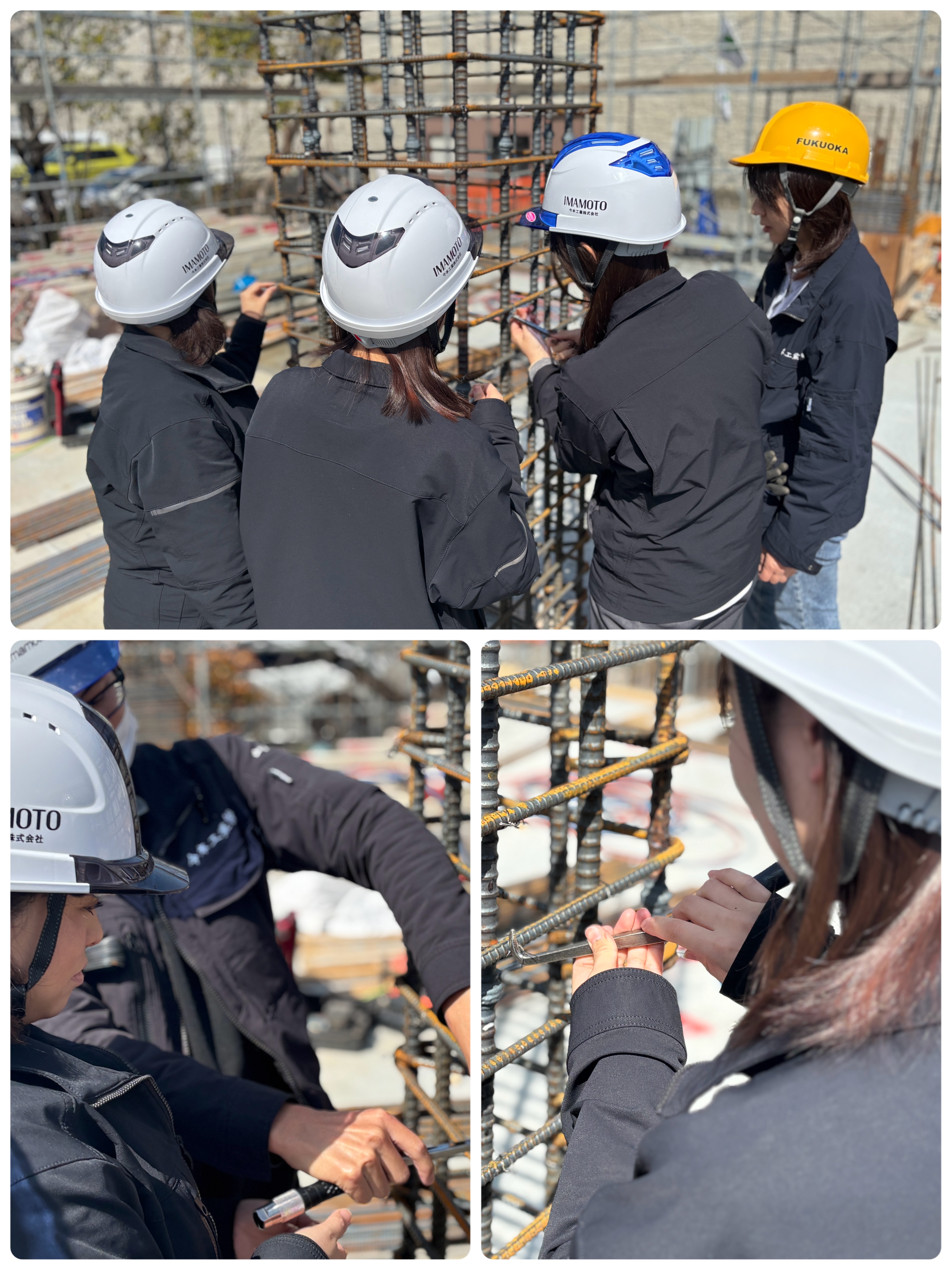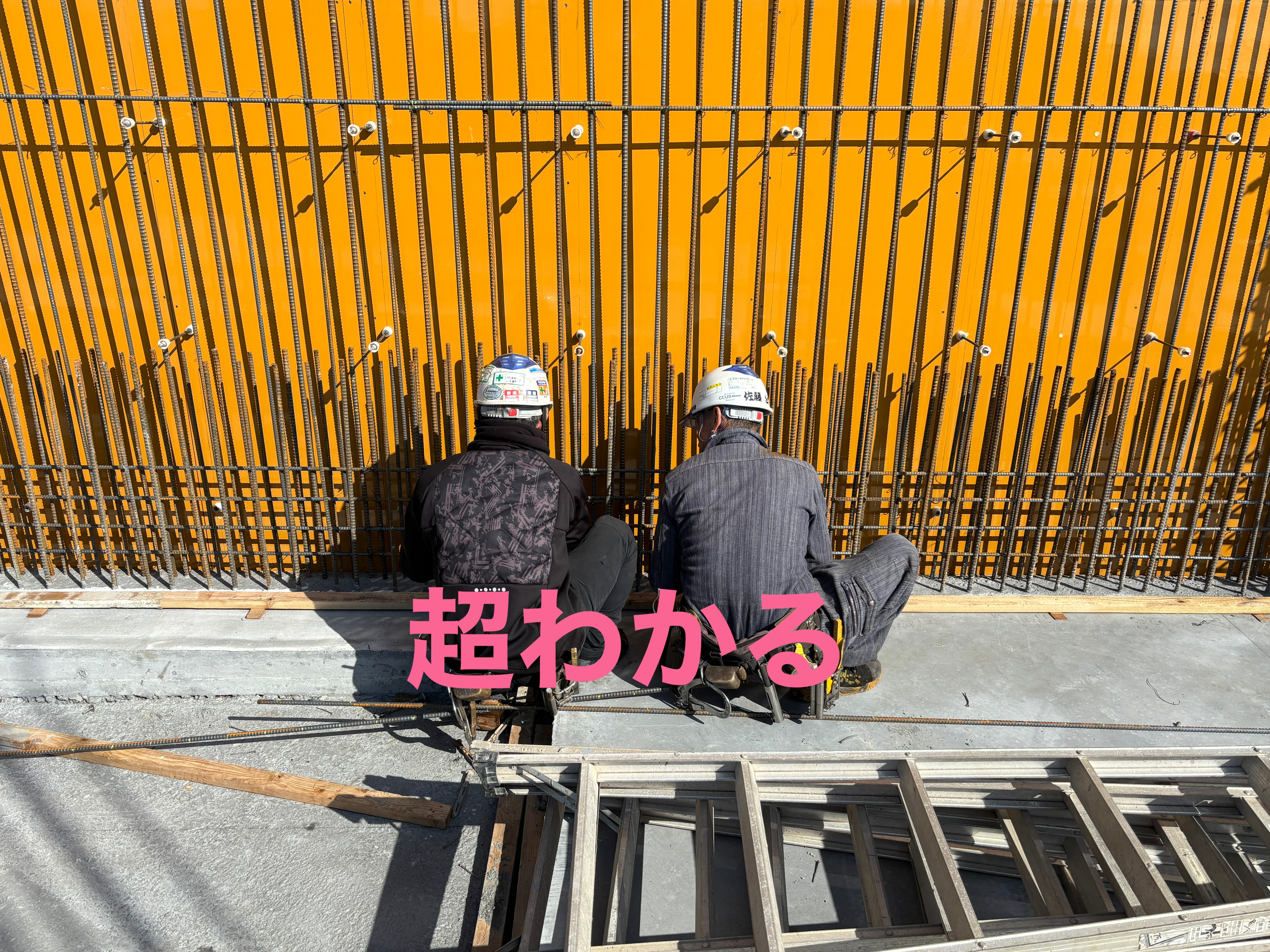 そうそう、事務方のスタッフで社屋の梁に鉄筋結束しました。